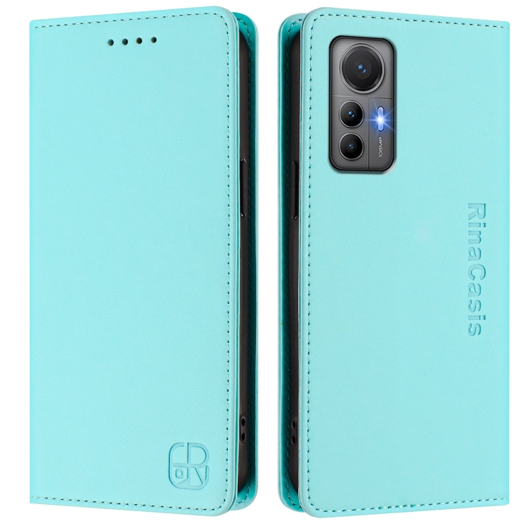 Funda de Cuero con Doble Pliegue y Succión Magnética Rfid para Xiaomi 12 Lite Rc01 (Verde Menta)