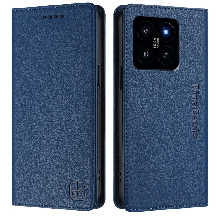 Funda De Cuero Con Doble Pliegue Y Succión Magnética Rfid Para Xiaomi 14 5G Rc01 (Azul Oscuro)