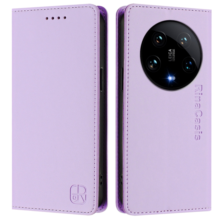 Funda De Cuero Con Doble Pliegue Y Succión Magnética Rfid Para Xiaomi 14 Ultra 5G Rc01 (Morado Claro)
