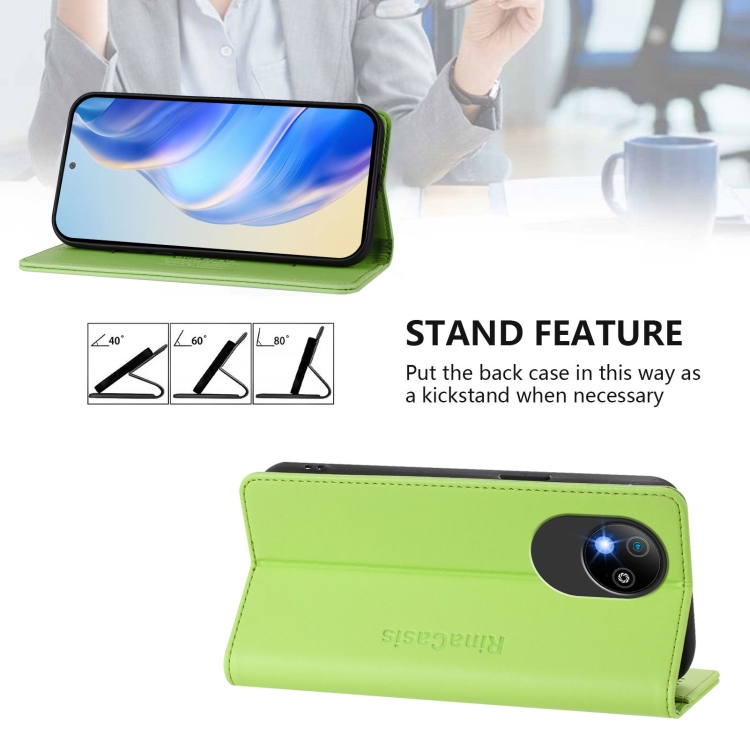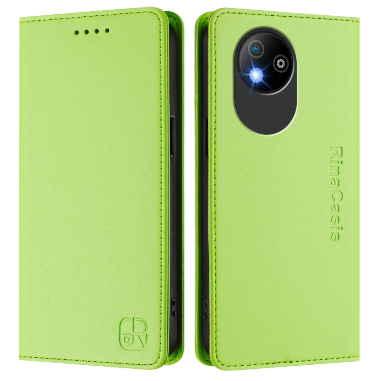 Funda de Cuero para ZTE Blade A35 Lite/A35 Core Rc01 con Doble Pliegue y Succión Magnética Rfid (Verde Hierba)