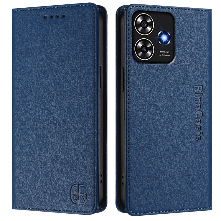 Funda de Cuero con Doble Pliegue y Succión Magnética Rfid para ZTE Blade A73 4G Rc01 (Azul Oscuro)