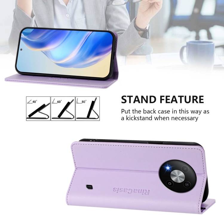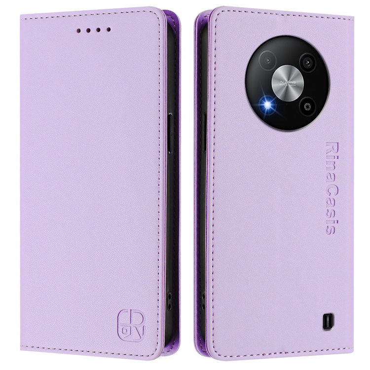 Funda de Cuero con Doble Pliegue y Succión Magnética Rfid para ZTE Blade A73 5G Rc01 (Morado Claro)