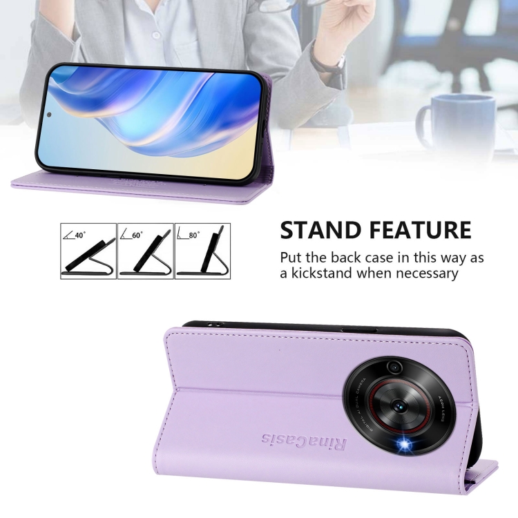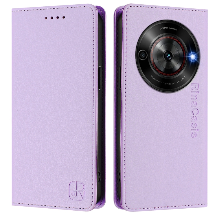 Funda de Cuero con Doble Pliegue y Succión Magnética RFID para ZTE Blade A75 5G y Nubia Focus 5G Rc01 (Morado Claro)