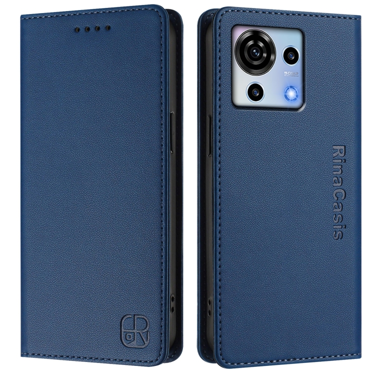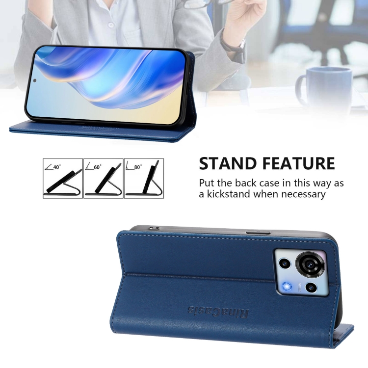 Funda de Cuero con Doble Pliegue y Succión Magnética Rfid para ZTE Blade V50 Vita Rc01 (Azul Oscuro)