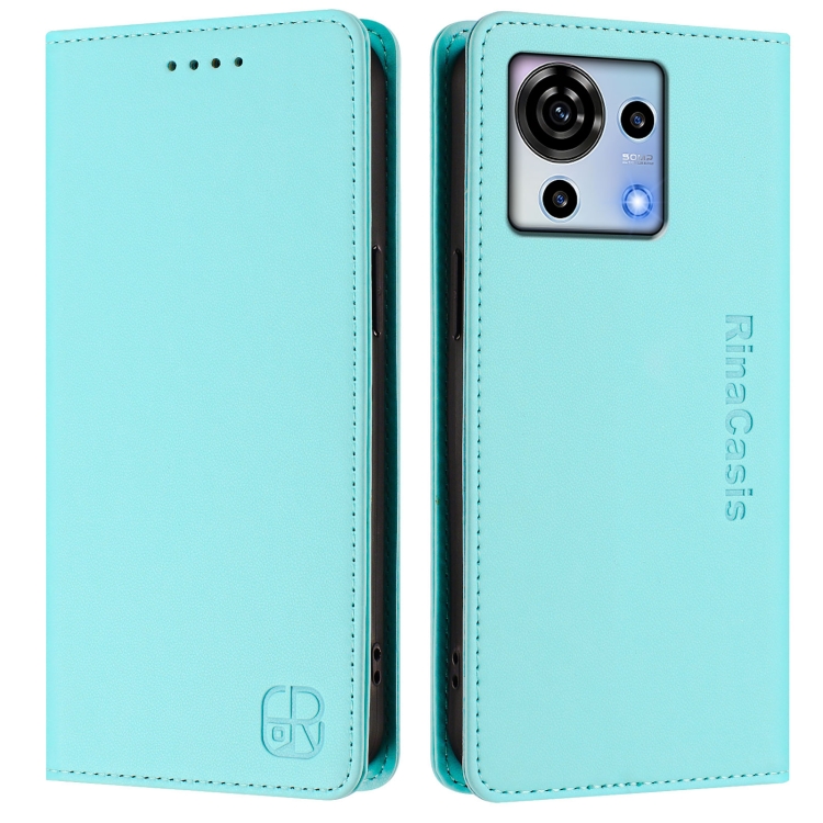 Funda de Cuero con Doble Pliegue Succión Magnética Rfid para ZTE Blade V50 Vita Rc01 (Verde Menta)