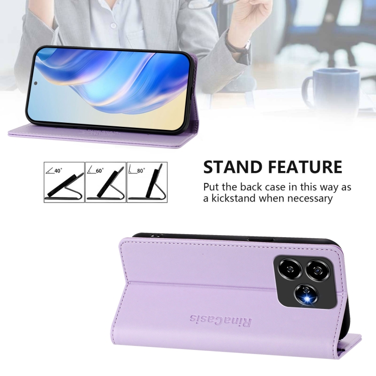 Funda de Cuero con Doble Pliegue y Succión Magnética RFID para ZTE Blade V60 4G Axon 60 4G Rc01 (Morado Claro)