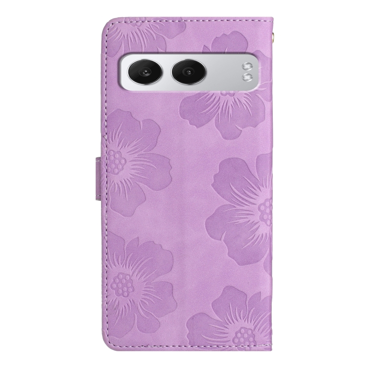 Funda de Cuero con Estampado de Flores en Relieve para OnePlus Nord 4 (Morado)