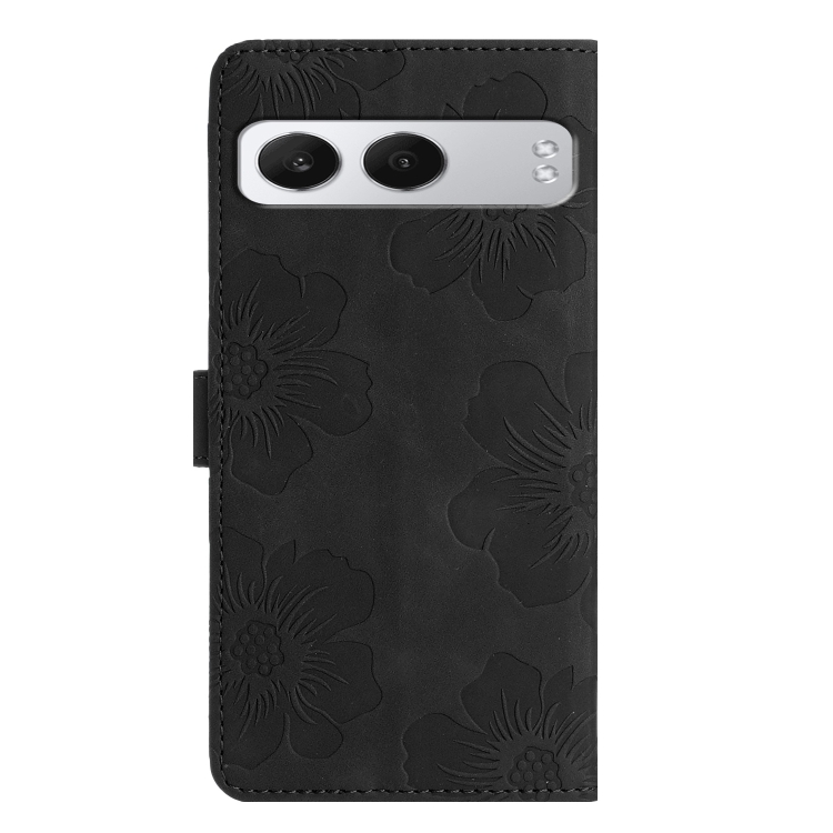 Funda de Cuero con Estampado de Flores en Relieve para OnePlus Nord 4 (Negra)