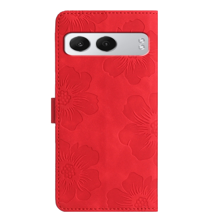 Funda de Cuero con Estampado de Flores en Relieve para OnePlus Nord 4 (Rojo)