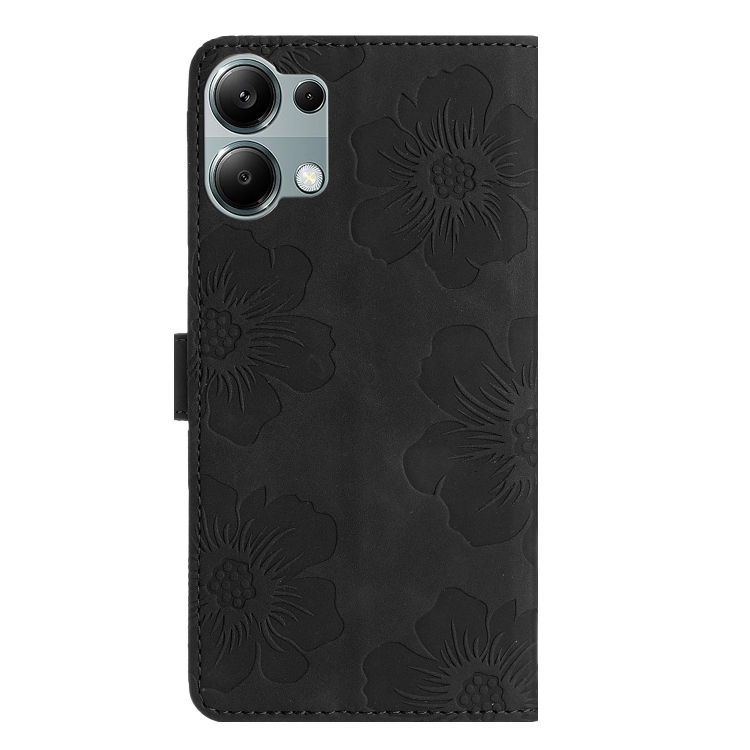 Funda de Cuero con Estampado de Flores En Relieve para Redmi Note 13 Pro 4G (Negra)