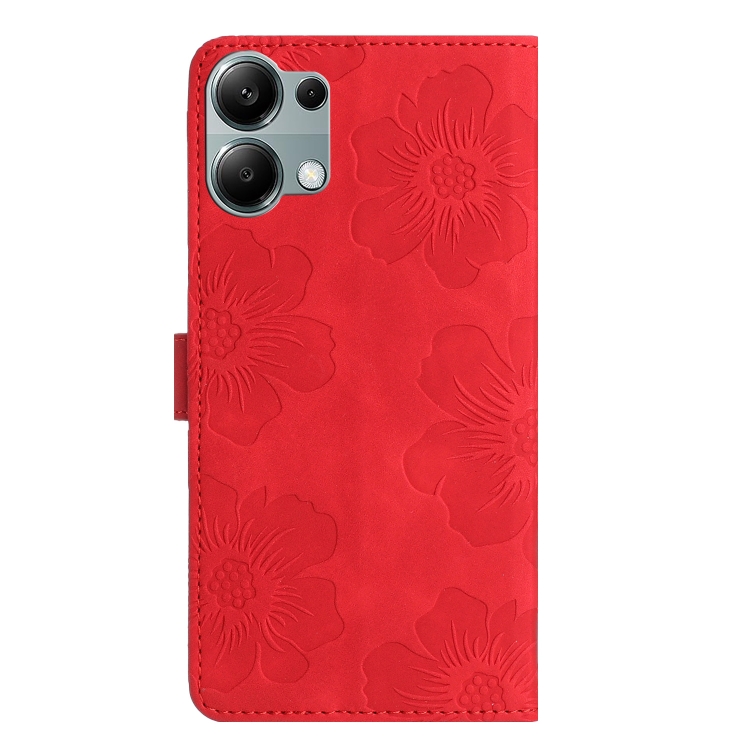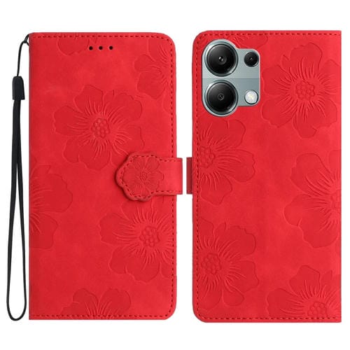 Funda de Cuero con Estampado de Flores En Relieve para Redmi Note 13 Pro 4G (Rojo)