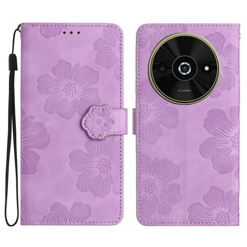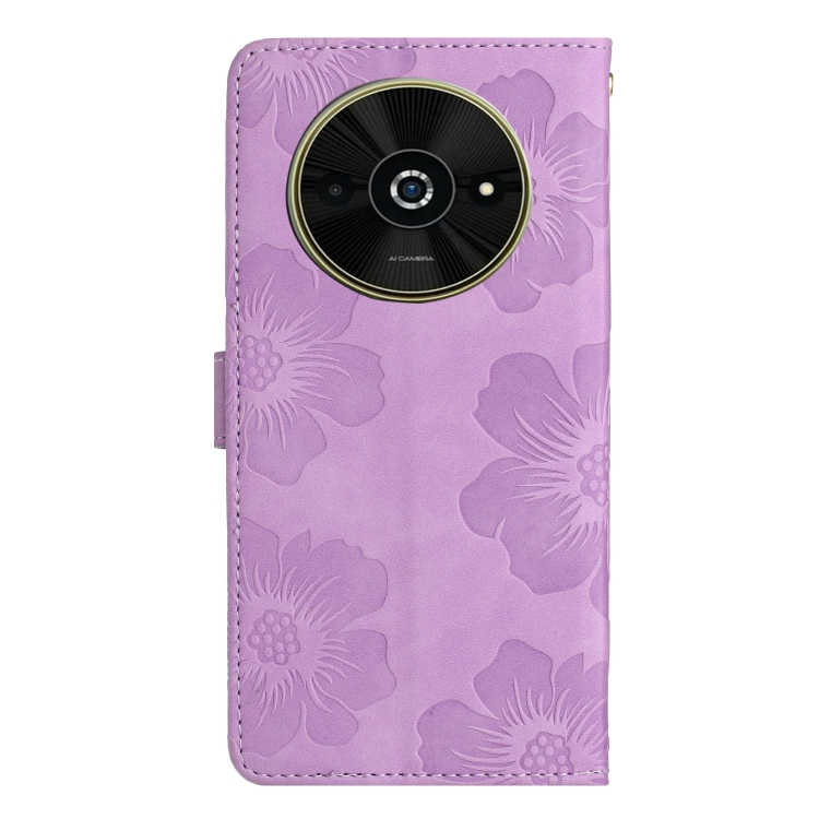 Funda de Cuero con Estampado de Flores En Relieve para Xiaomi Poco C61 (Morado)