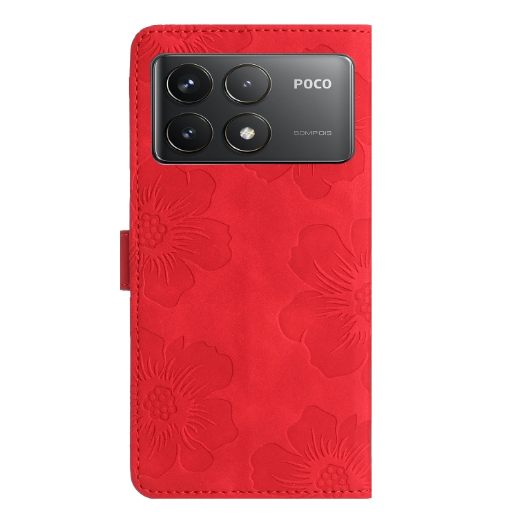Funda de Cuero con Estampado de Flores En Relieve para Xiaomi Poco F6 Pro (Rojo)