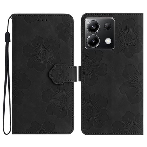 Funda de Cuero con Estampado de Flores En Relieve para Xiaomi Poco X6 (Negra)