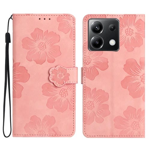Funda de Cuero con Estampado de Flores En Relieve para Xiaomi Poco X6 (Rosa)