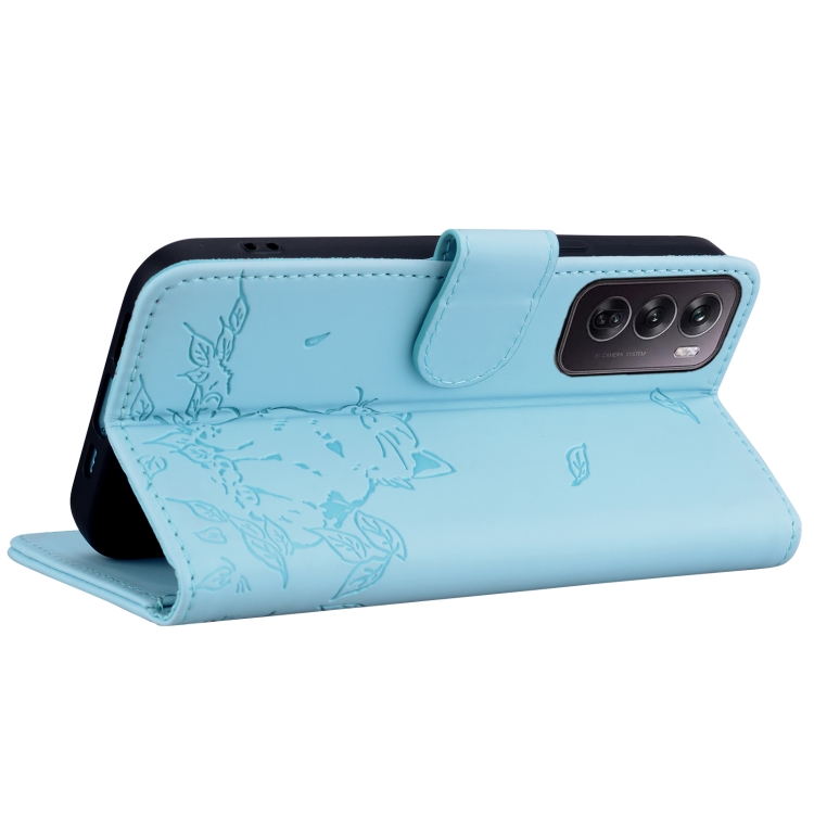 Funda de Cuero con Estampado de Gato Lindo para Oppo Reno12 Pro 5G Global (Azul Cielo)