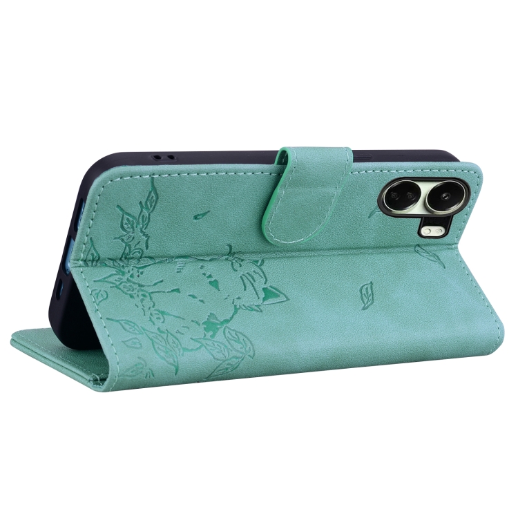 Funda de Cuero con Estampado de Gato Lindo para Redmi 13C 4G (Verde)