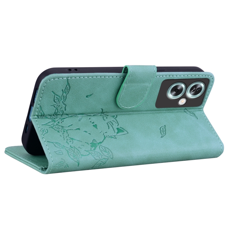 Funda de Cuero con Estampado de Gato para OnePlus Nord N30 Se (Verde)