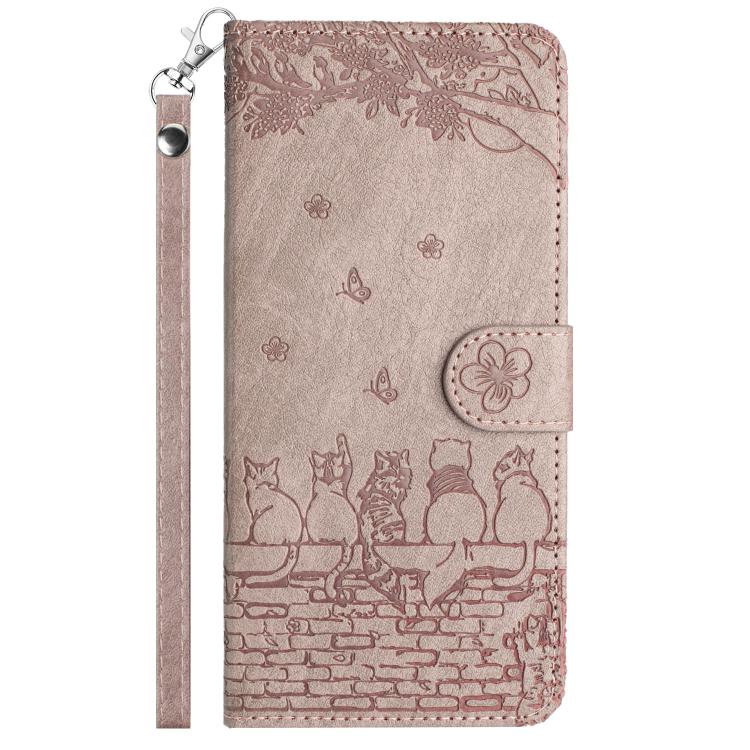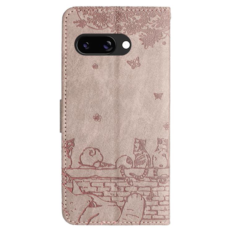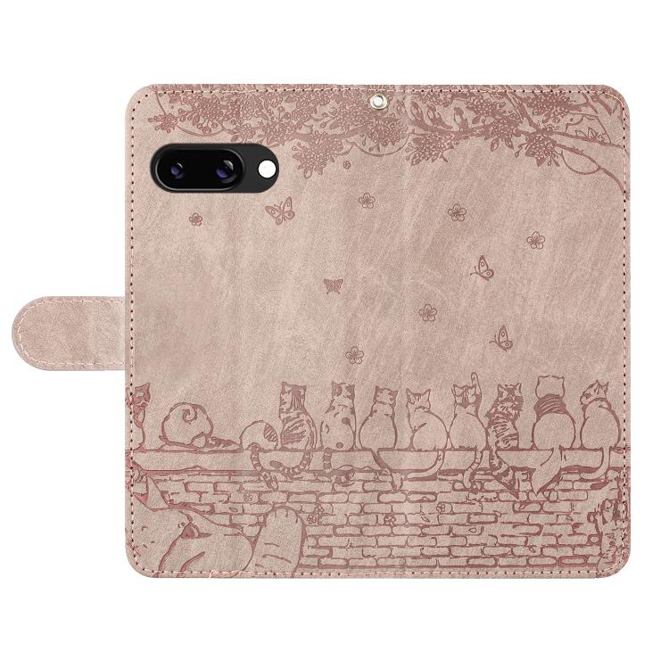 Funda de Cuero con Estampado de Gato y Cordón para Google Pixel 9A (Gris)