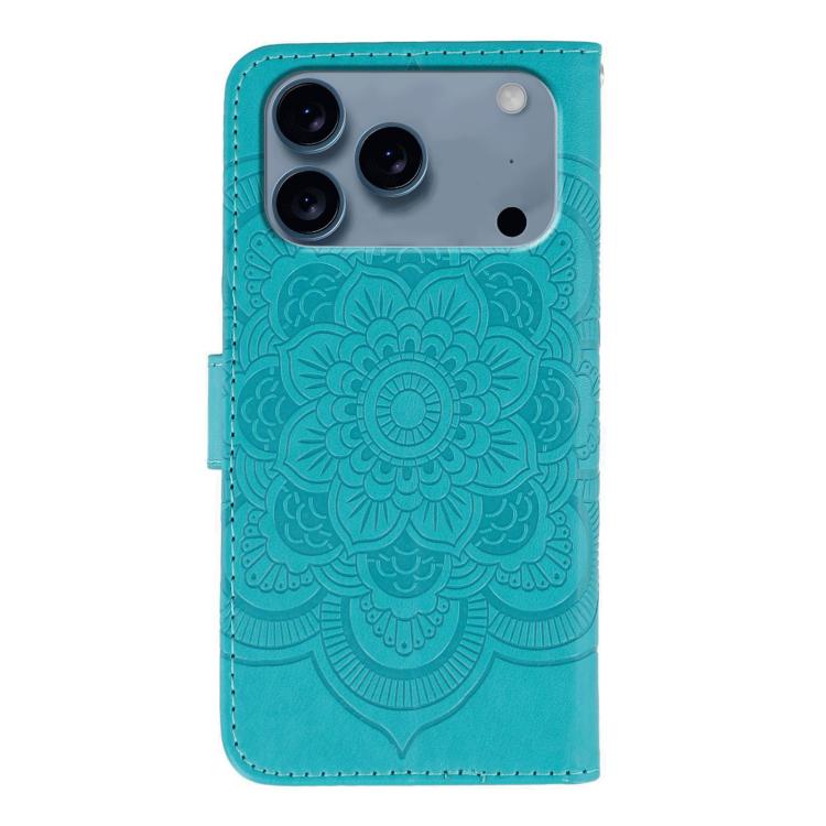 Funda de cuero con estampado de mandala solar para iPhone 17 Pro (azul)