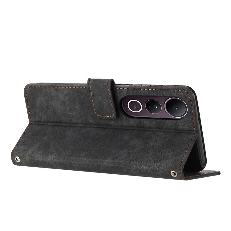 Funda de Cuero con Estampado de Rayas y Cordón para Vivo V50 Lite (Negro)