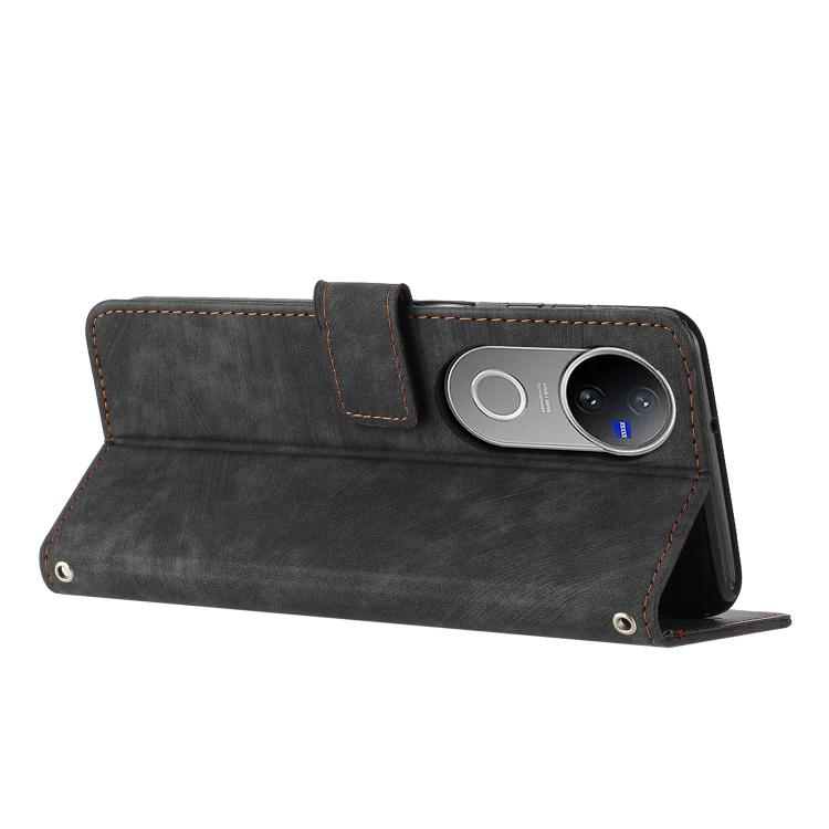 Funda de Cuero con Estampado de Rayas y Cordón para Vivo V50 (Negro)