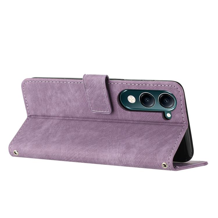 Funda de Cuero con Estampado de Rayas y Cordón para Vivo Y29S 5G / Y04 4G (Morado)