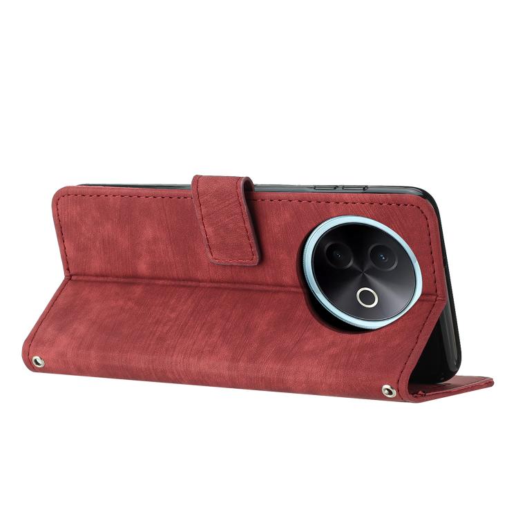 Funda de Cuero con Estampado de Rayas y Cordón para Vivo Y39 5G (Rojo)