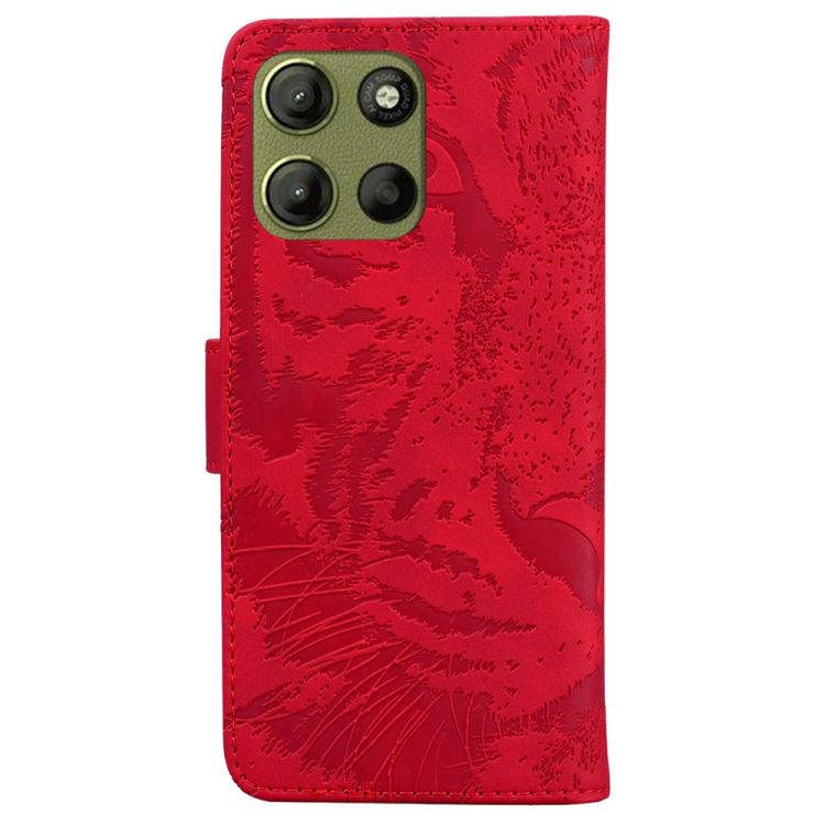 Funda de Cuero para Motorola Moto G15 con Estampado de Tigre (Rojo)
