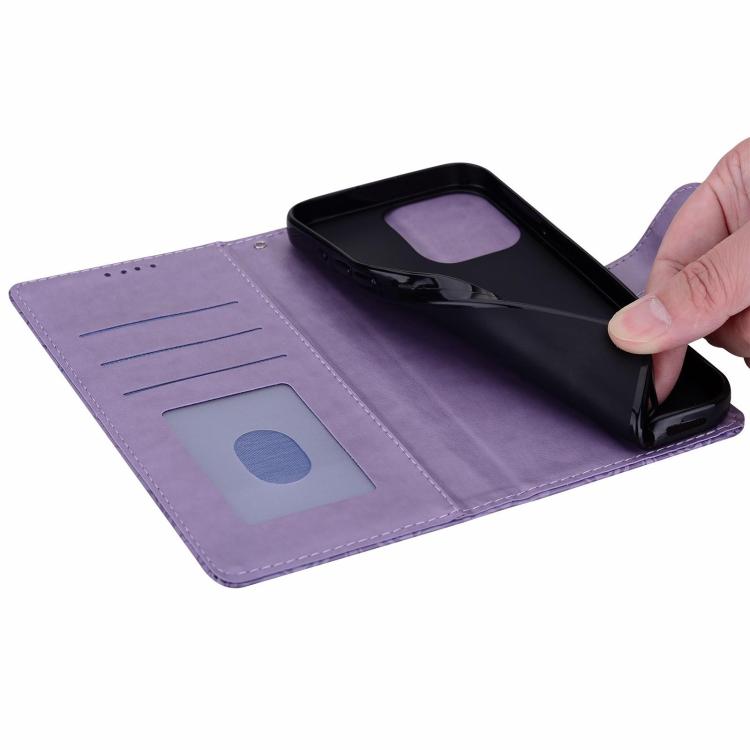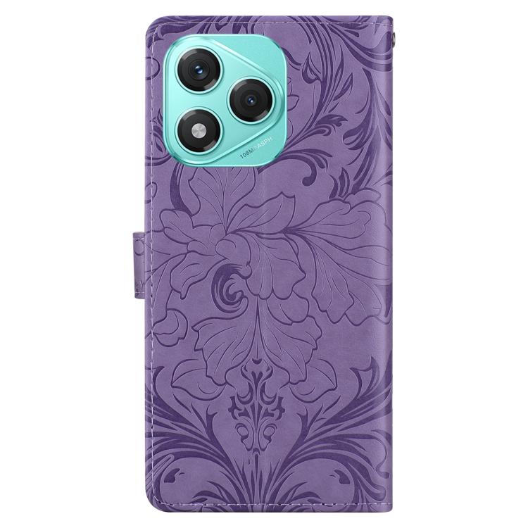 Funda de cuero con estampado floral en relieve global para Honor 400 Lite (morado)