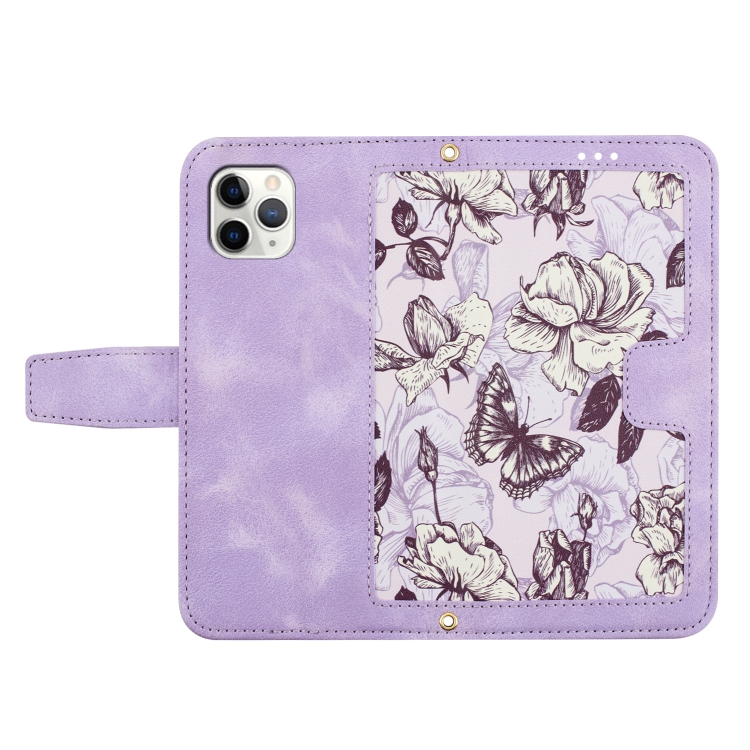 Funda de Cuero para iPhone 11 Pro Max Estampado Floral con Cordón (Morado Claro)