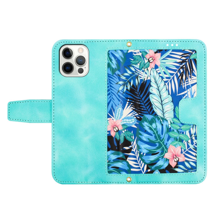 Funda de Cuero iPhone 12 Pro Max Estampado Floral con Cordón (Verde)