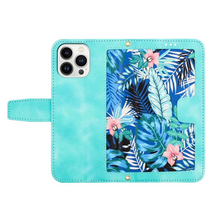 Funda de Cuero para iPhone 16 Pro Max Estampado Floral con Cordón (Verde)