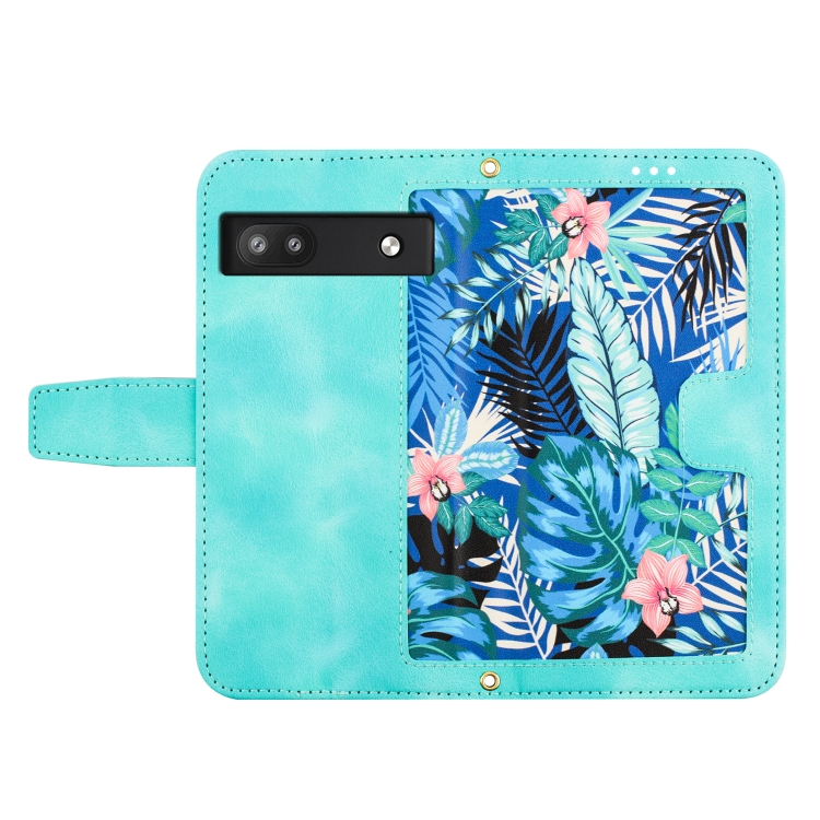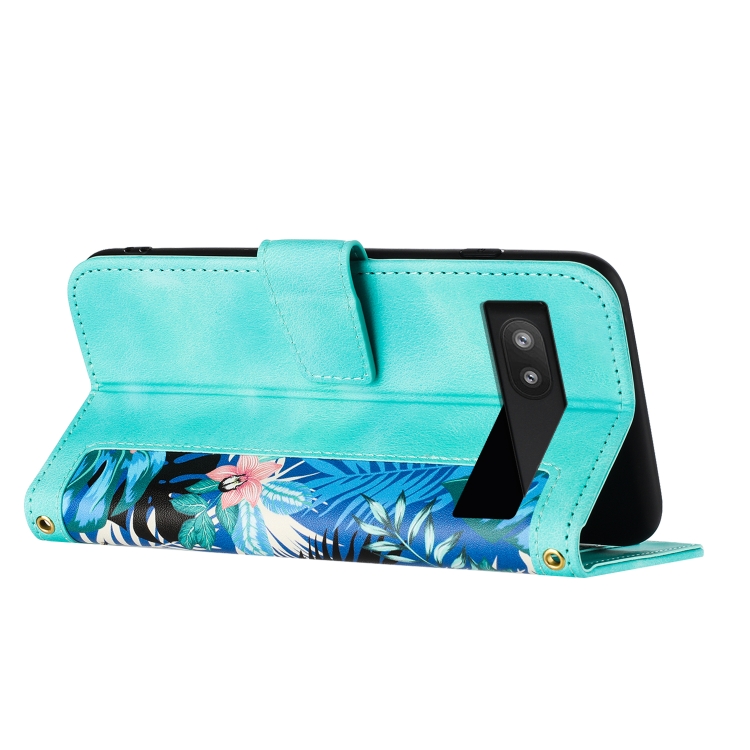 Funda de Cuero con Estampado Floral para Google Pixel 6A con Cordón (Verde)
