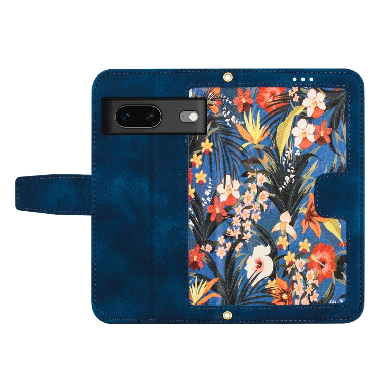 Funda de Cuero con Estampado Floral para Google Pixel 7 con Cordón (Azul Oscuro)