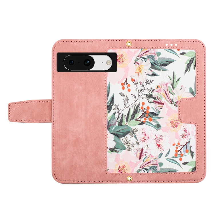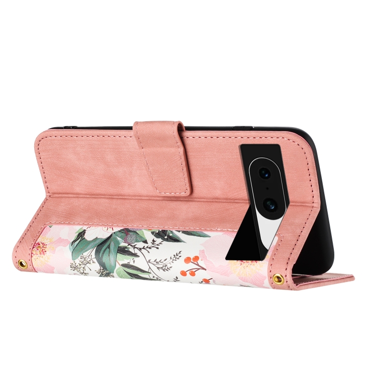 Funda de Cuero con Estampado Floral para Google Pixel 8 con Cordón (Rosa)