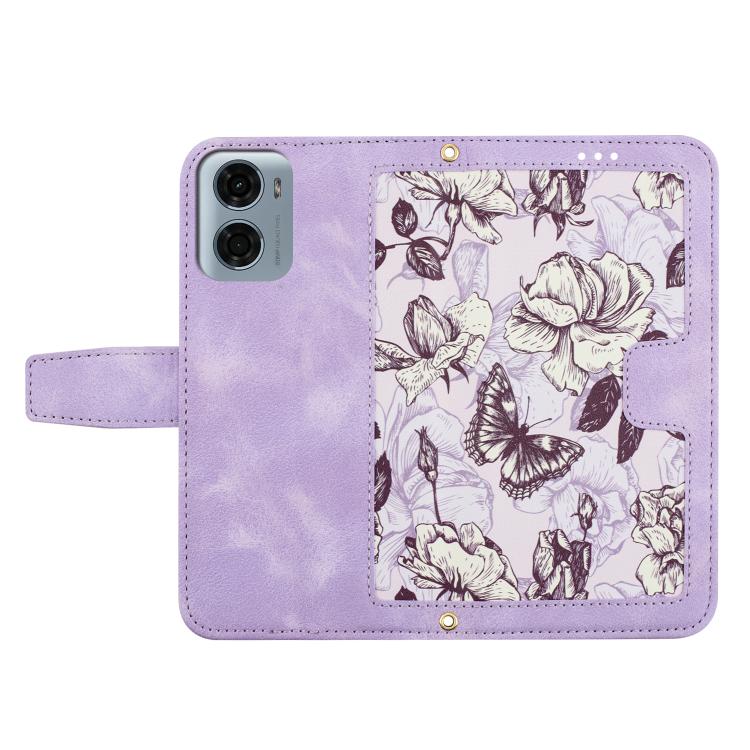 Funda de Cuero con Estampado Floral y Cordón para Motorola Moto G05 (Morado Claro)