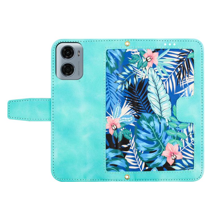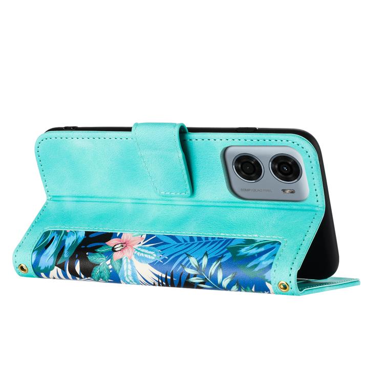 Funda de Cuero Motorola Moto G05 Estampado Floral con Cordón (Verde)