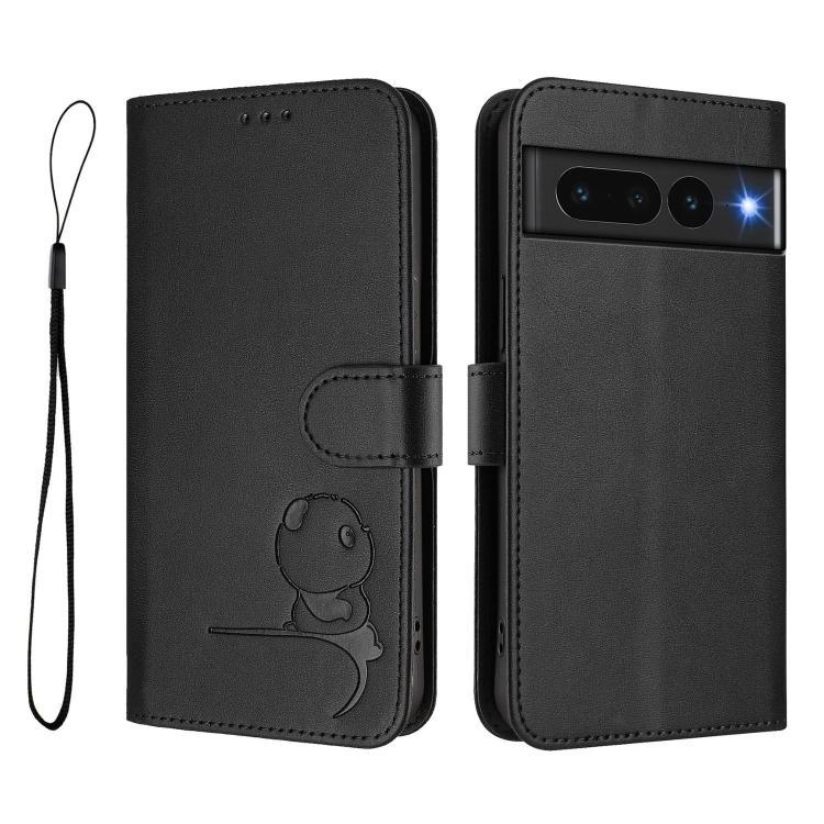 Funda de cuero con estampado RFID y cordón para Google Pixel 7 Pro (negro)