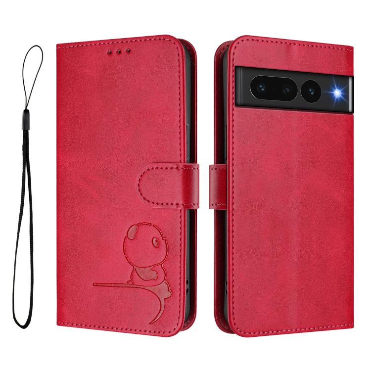 Funda de cuero con estampado RFID y cordón para Google Pixel 7 Pro (rosa y rojo)