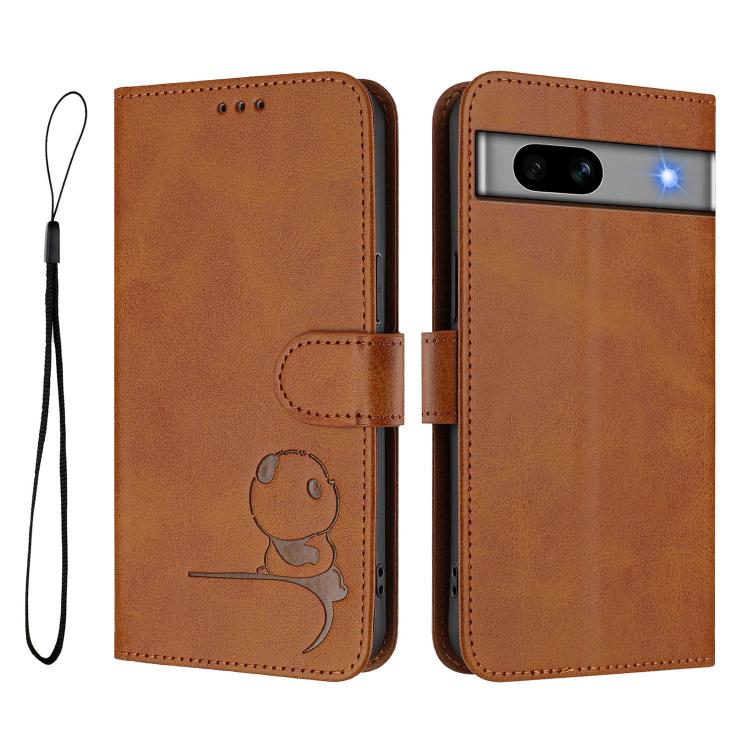 Funda de cuero con estampado RFID y cordón para Google Pixel 7a (marrón)