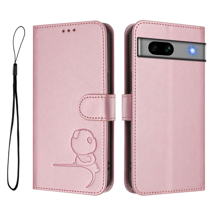Funda de cuero con estampado RFID y cordón para Google Pixel 7a (rosa)