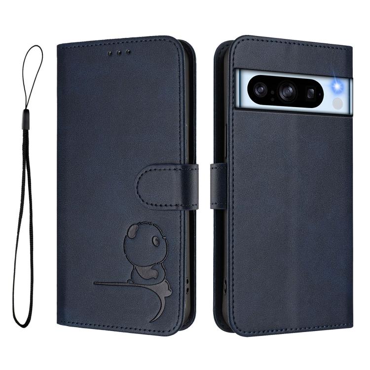 Funda de cuero con estampado RFID y cordón para Google Pixel 8 Pro (azul)
