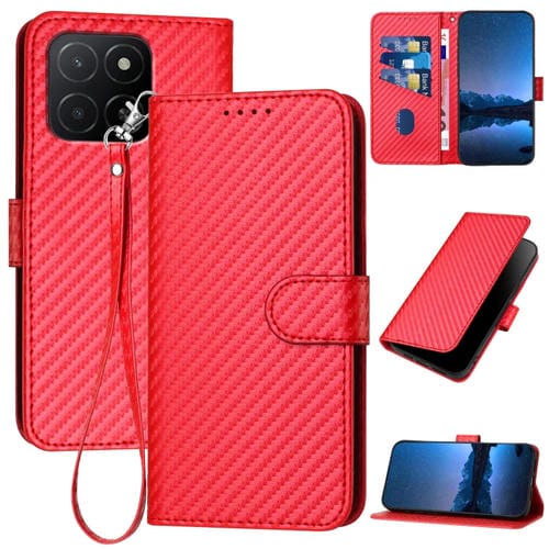 Funda de Cuero con Hebilla de Fibra de Carbono y Cordón para Honor X5B/X5B Plus (Rojo)