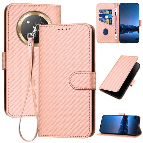 Funda de Cuero con Hebilla de Fibra de Carbono y Cordón para Honor X9C Global Yx0070 (Rosa)