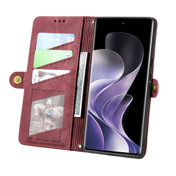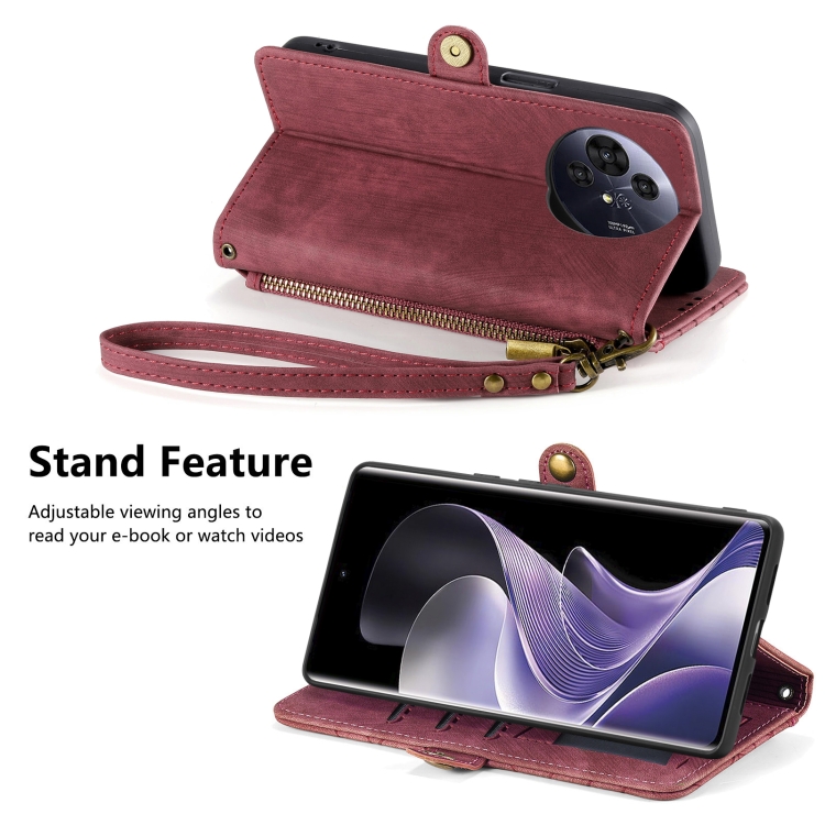 Funda de Cuero Nxtpaper para TCL 50 Pro con Hebilla Lateral y Cremallera Geométrica (Rojo)