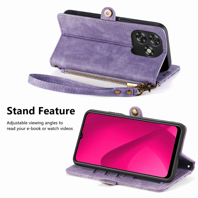 Funda de Cuero con Hebilla y Cremallera Geométrica para Oukitel C53 (Morado)