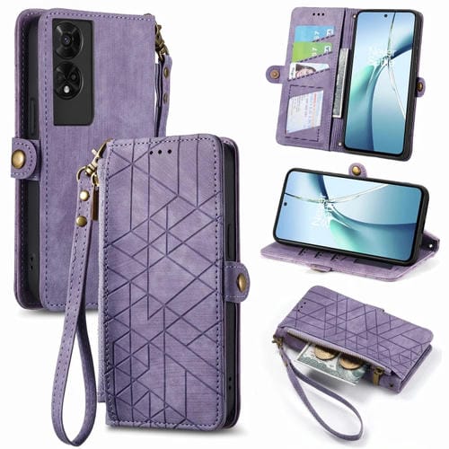 Funda de Cuero para TCL 50 5G con Hebilla Lateral y Cremallera Geométrica (Morado)