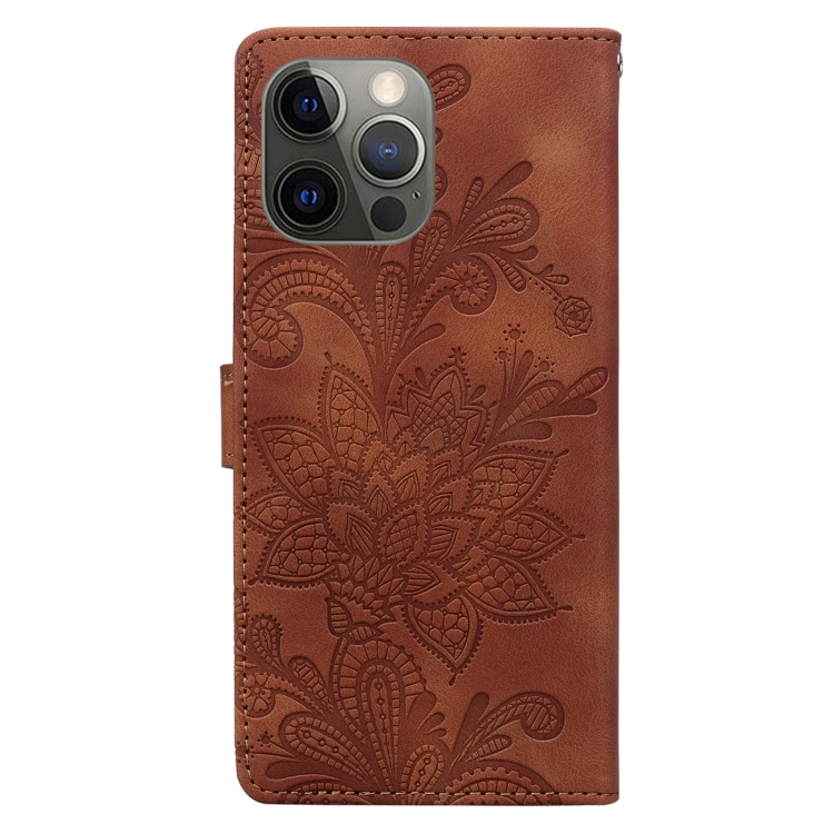 Funda de Cuero con Hebilla Magnética y Diseño Floral En Relieve para iPhone 12 Pro (Marrón)