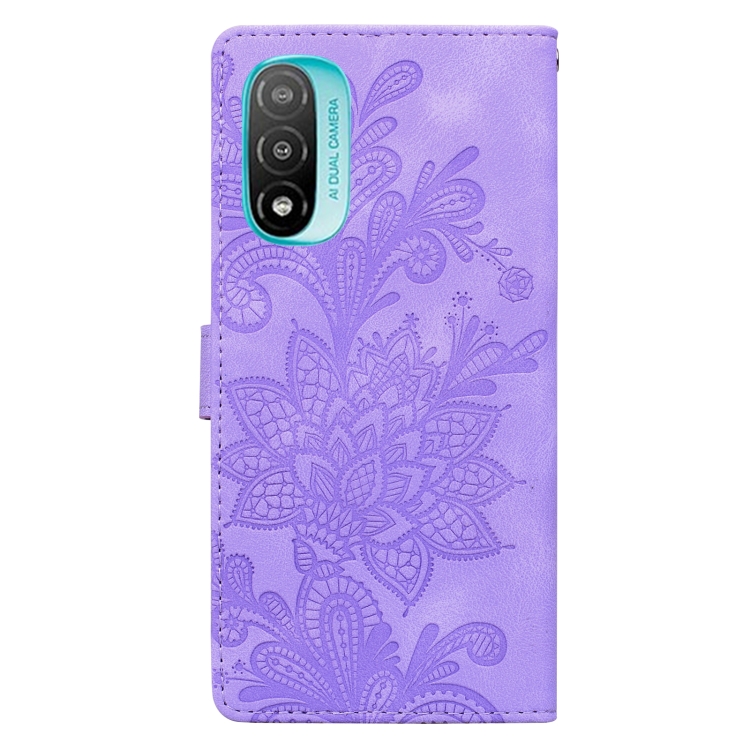 Funda de Cuero con Hebilla Magnética y Diseño Floral para Motorola Moto E20 (Morado)